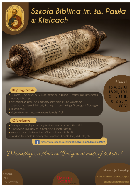 Dnia 18 października zainauguruje działalność Szkoła Biblijna im. św. Pawła w Kielcach. To propozycja kursu biblijnego, który pogłębi rozumienie
