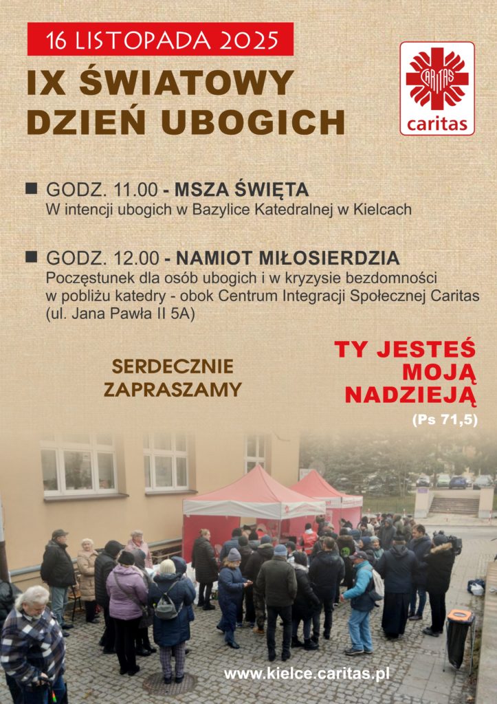 W niedzielę 16 listopada br. obchodzimy już po raz dziewiąty Światowy Dzień Ubogich. W tym roku przyświeca mu hasło: „Ty jesteś moją nadzieją” i jest on połączony z obchodami Jubileuszu Osób Ubogich.