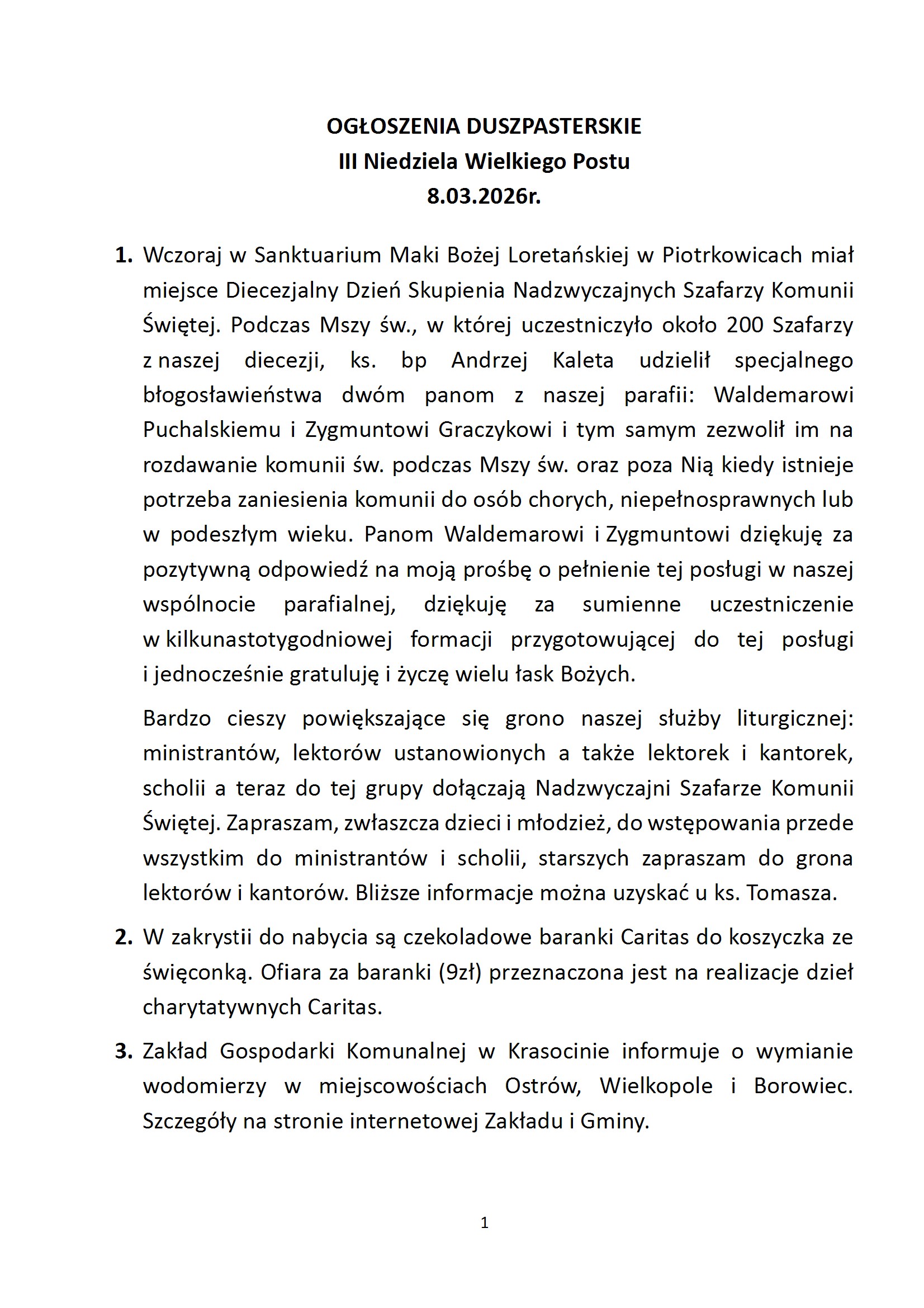 Ogłoszenia duszpasterskie